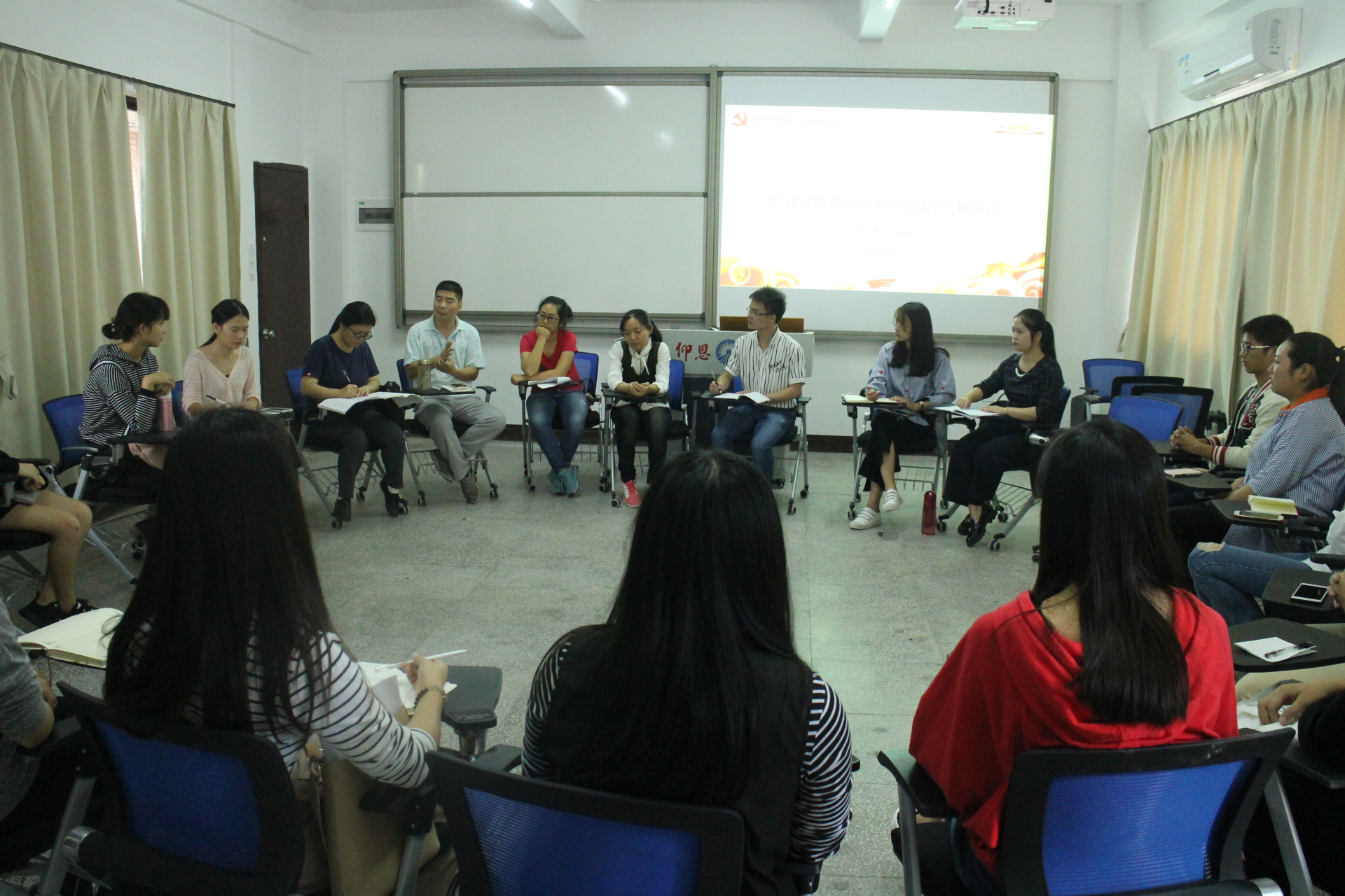 根据今年会jinnian官网党总支“三访三创”的活动计划和安排,院党总支于2017年11月7日下午于吉龙楼208开展“今年会jinnian官网教工党支部访谈学生团支部”活动,教工党支部的全体党员同志、学院辅导员和各班团支书参加了此次的座谈会。
