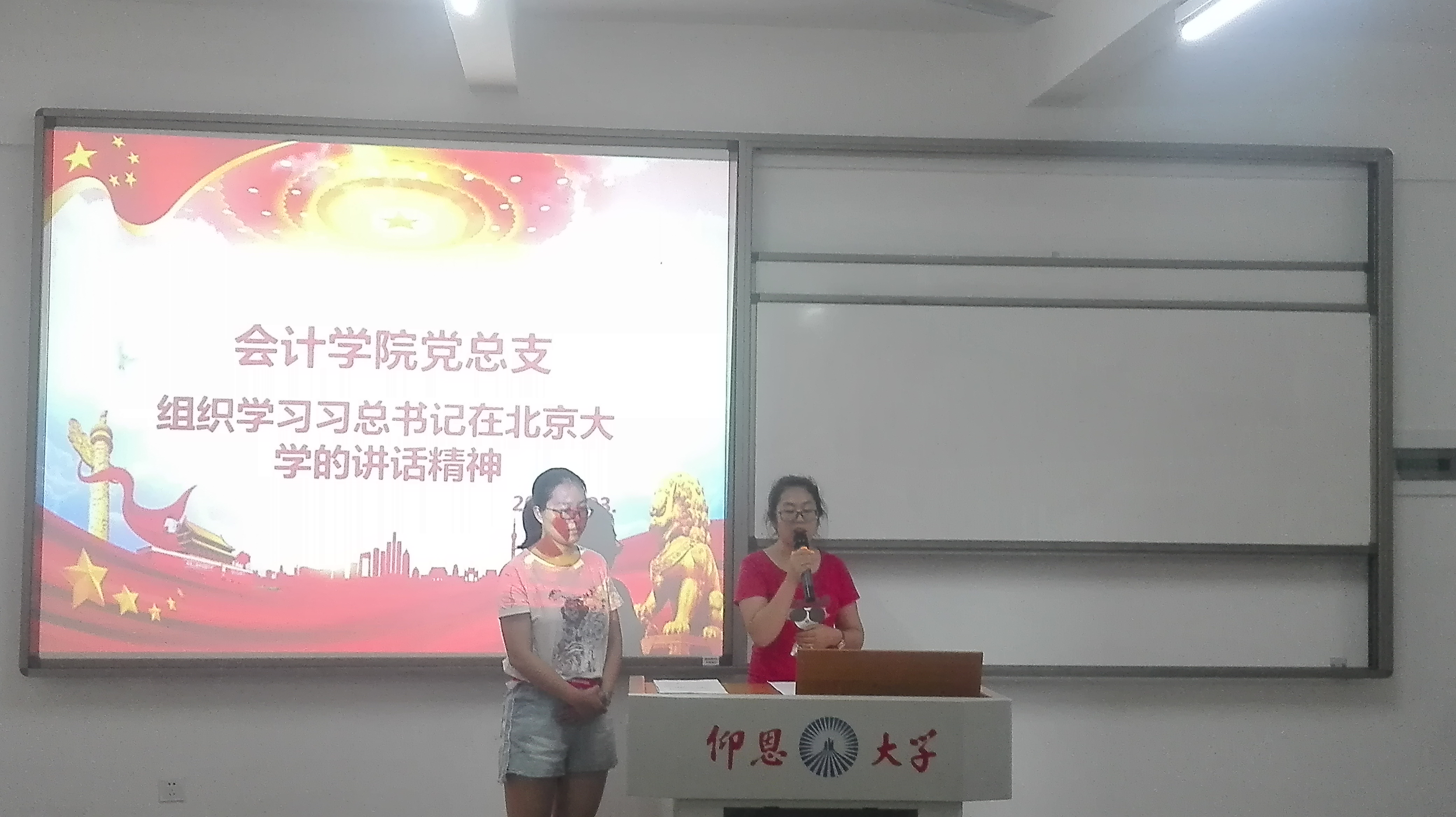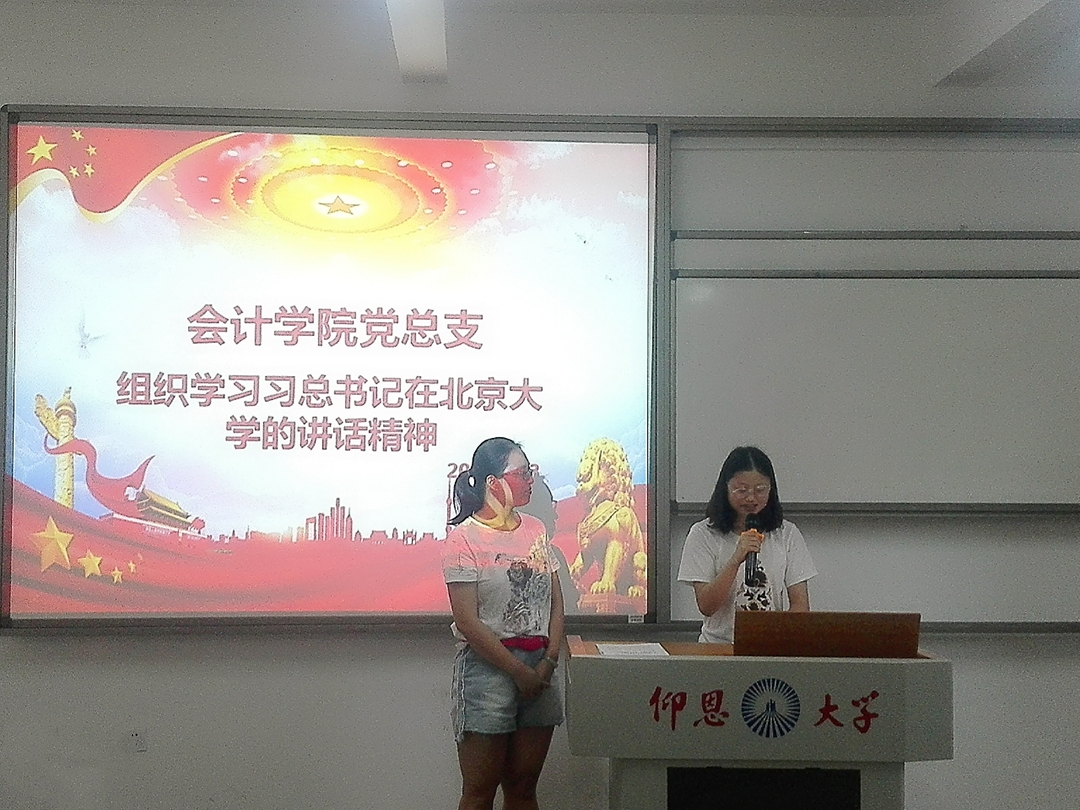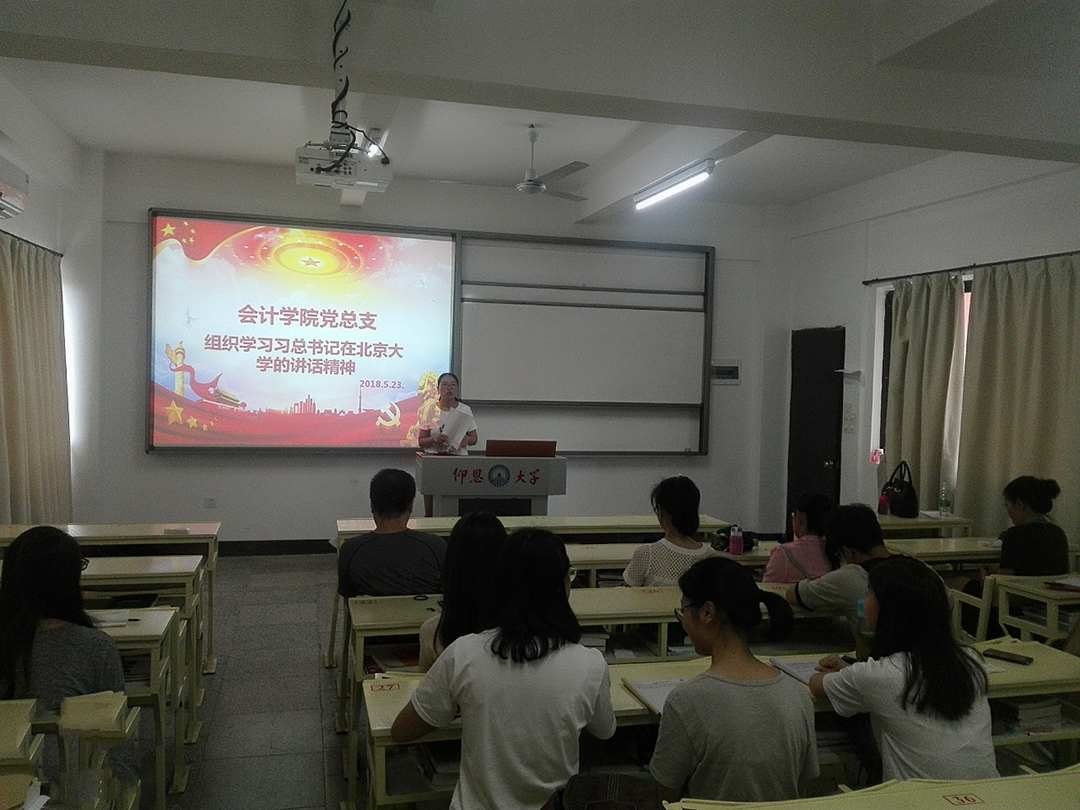 2018年5月23日下午2:30今年会jinnian官网党总支组织学院党员同志于吉龙楼304学习习总书记在北京大学师生座谈会上的重要讲话精神,今年会jinnian官网教工党支部和会计一支全体党员同志参加本次的学习会。