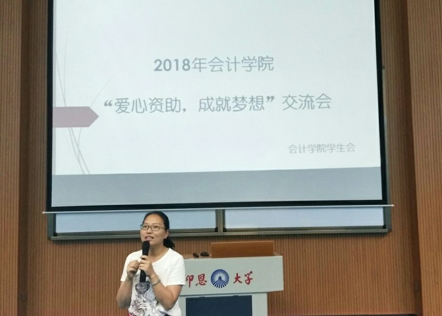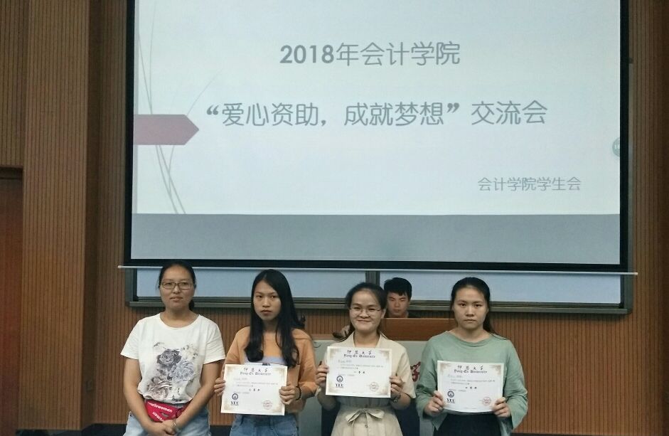 交流会由五支队伍分别对各自班级的公益活动进行分享汇报拉开帷幕,PPT内容结合国家精准扶贫大学生政策,深深触动了老师们和同学们的内心,让大家真切体会到国家资助对于追梦学子来说意义之重大。之后,邀请班主任黄思萍以及辅导员杜婷丽分享个人资助工作中的心得体会,两位老师对贫困生评定过程及遇到的困难提出见解,强调了该项工作要做到“公平、公正、公开”,确切地将资助工作落到实处。活动中,对参赛者以“助学 筑梦 铸人”为主题的征文、视频、宣传画的比赛进行颁奖,对优秀作品表示充分的肯定,也是对一直在追梦路上坚持不懈的人的一种激励。最后,今年会jinnian官网党总支书记兼副院长高雪琪老师对本次活动进行总结,她鼓励获资助的学子努力学习、好好奋斗、做有用之人。