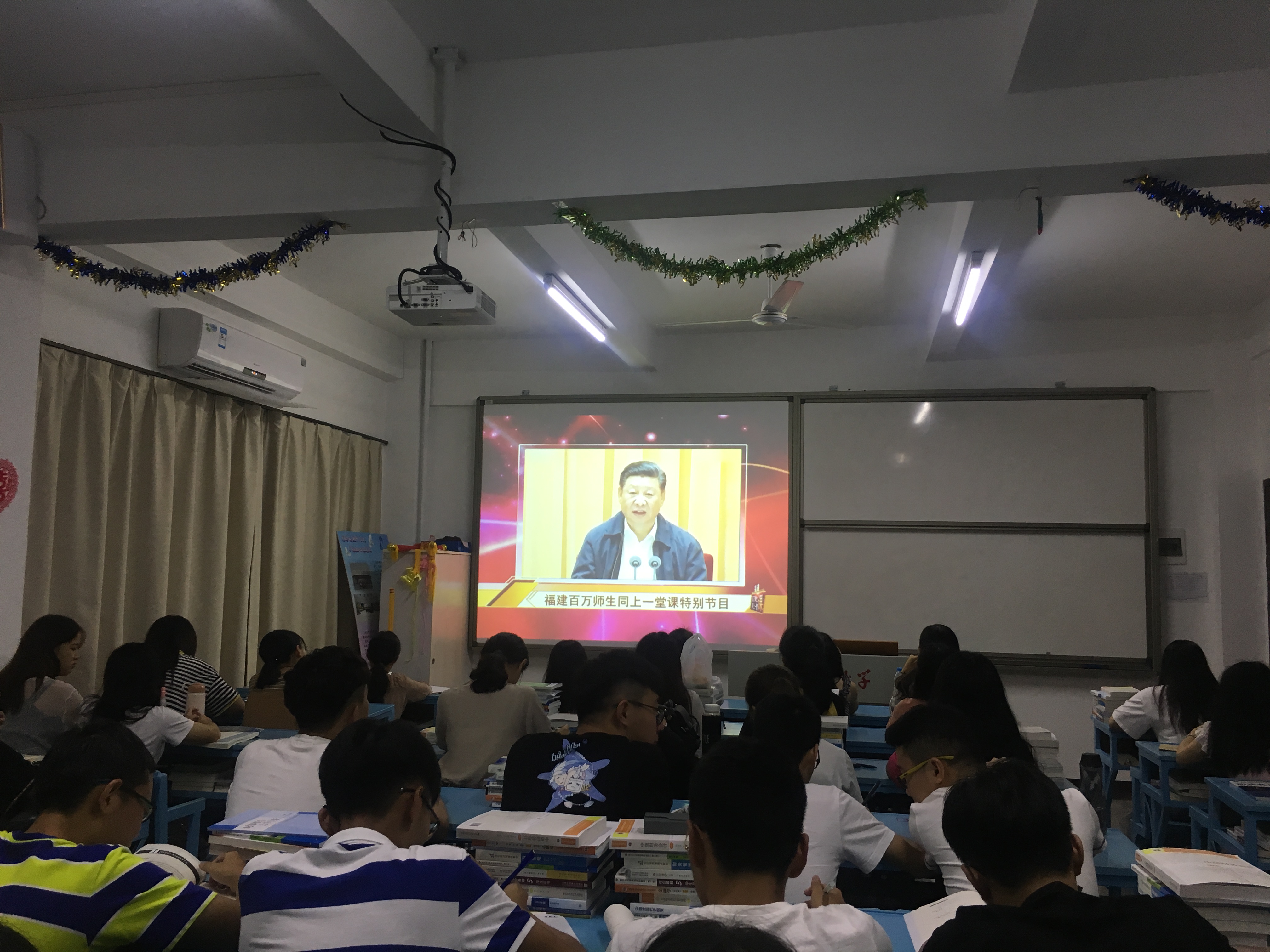 9月3日晚20:00,今年会jinnian官网全体学生以班级为单位在各班班主任的组织下于吉龙楼各班级教室内共同观看“学习‘新思想’福建百万师生同上一堂课特别节目”。