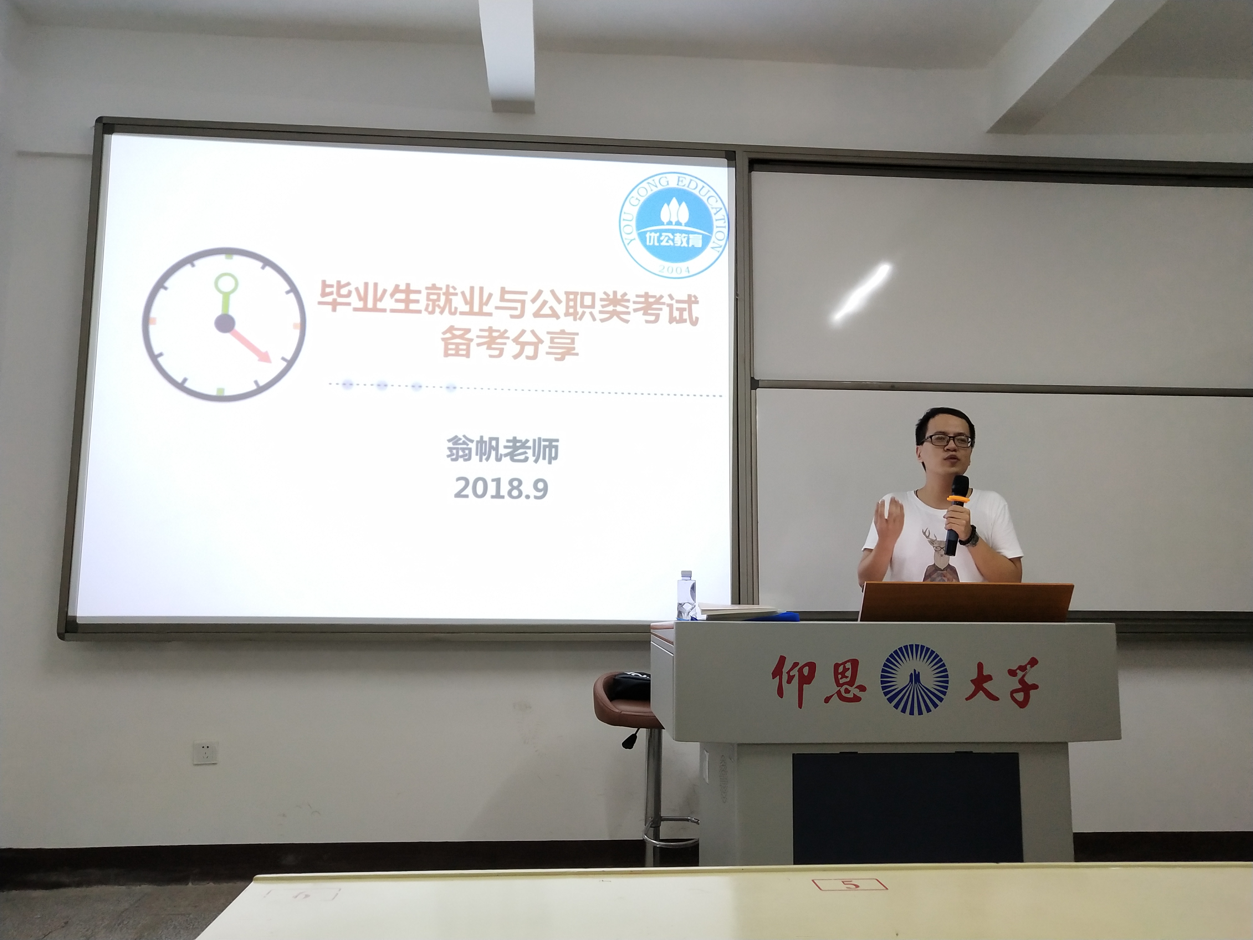 9月6日晚7时,聚英教育集团优公教育的培训师翁帆老师走进校园,在吉龙楼304为我校学生开展了此次讲座。期间,翁帆老师详细介绍了填报岗位的重要性以及国考、省考如何筛选岗位;通过众多数据表明,近几年报考公务员的人数从增长趋势到相对平缓趋势,每年的弃考率在30%左右,然而每年每个岗位的竞争仍然激烈,对每个考生来说无疑是一场考验,备考是否充分,心理素质是否强大,都至关重要。
