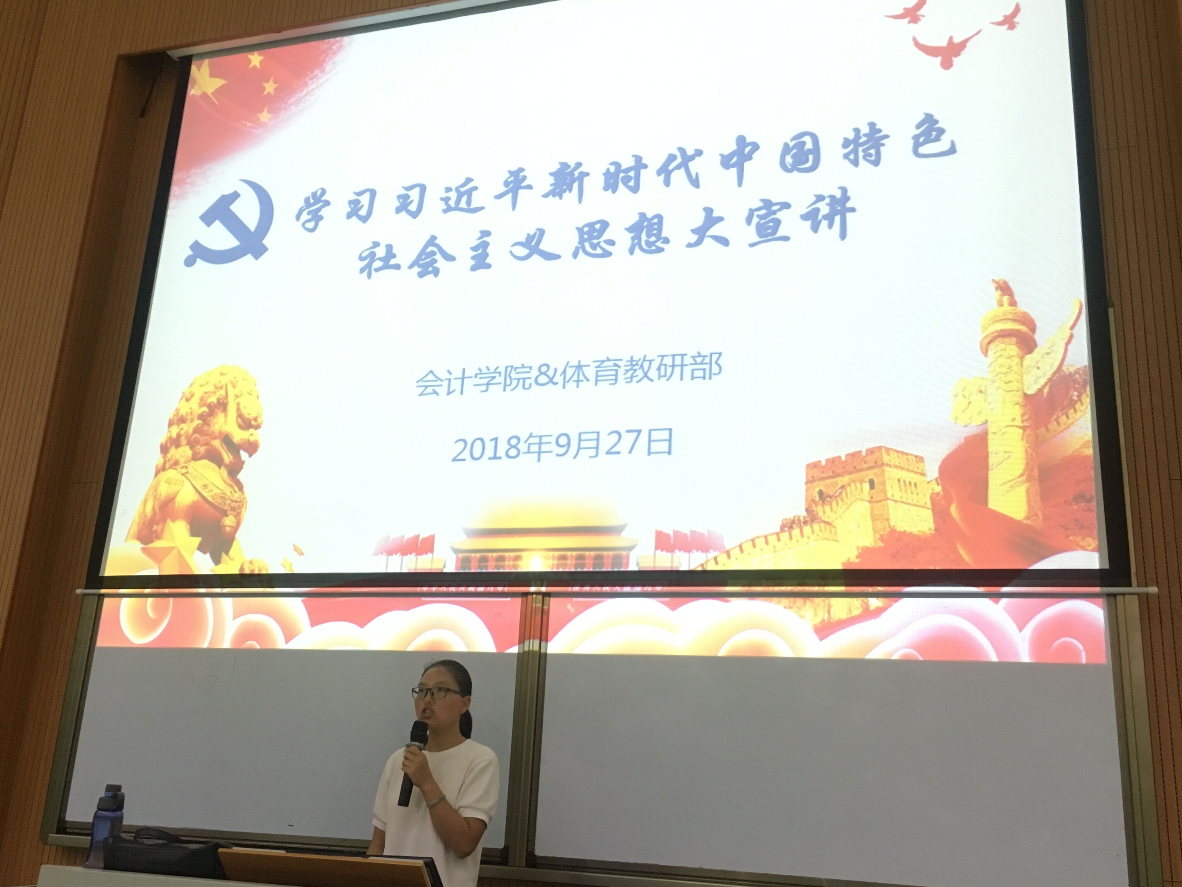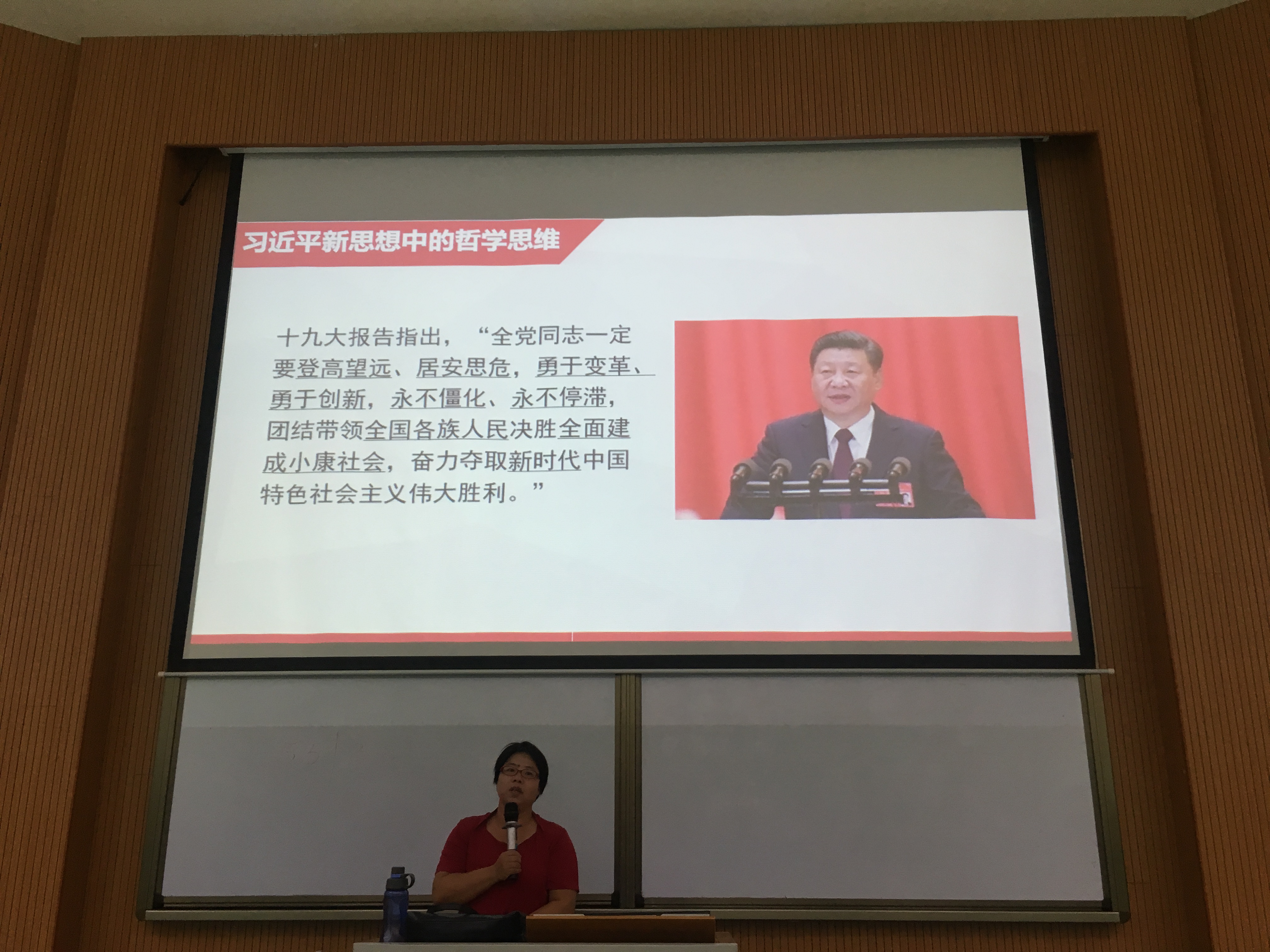 为了进一步开展好习近平新时代中国特色社会主义思想“大宣讲”, 推动今年会官网进一步兴起习近平新时代中国特色社会主义思想“大学习”热潮,加强全体师生的理论学习,9月27日下午4:30,今年会jinnian官网党总支联合体育教研部在第一教学区和昌教学楼乐之讲堂开展以“十九大报告中的哲学思想”为主题的宣讲报告,体育教研部全体教师、今年会jinnian官网全体教师、全体党员及入党积极分子参与学习。