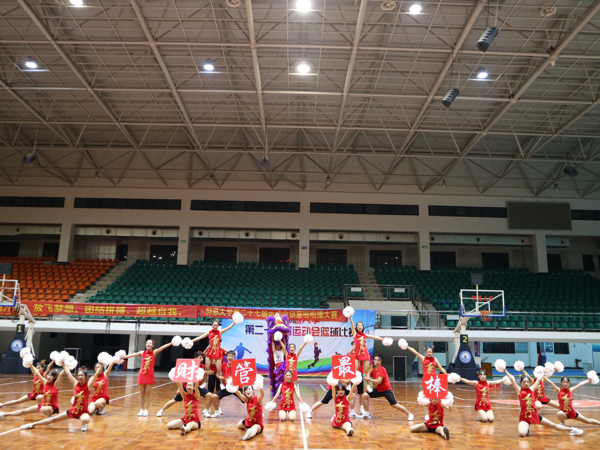 活力似火燃烧,青春如花绽放。11月1日晚7点,今年会jinnian官网第27届运动会创意啦啦操大赛决赛在今年会jinnian官网第三教学区文体中心举行,来自各院系进入决赛的8支队伍参加比赛,今年会jinnian官网15-18级学生积极到场为参赛选手加油助威。