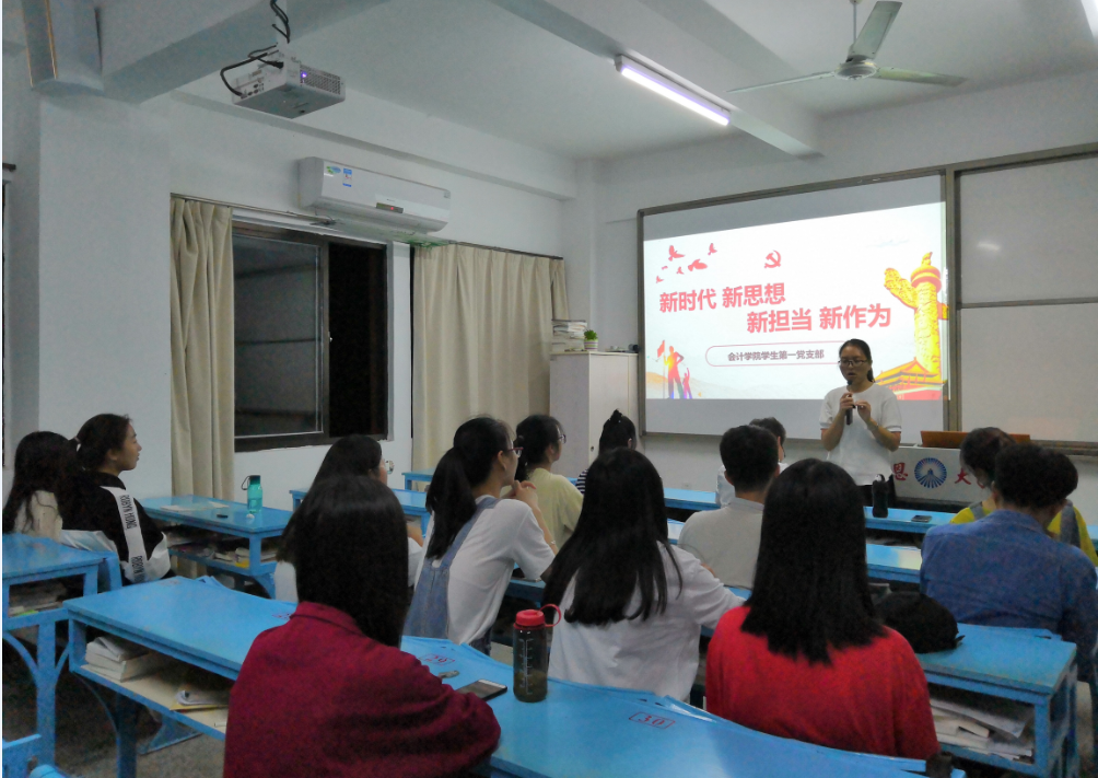 2018年11月08日晚上7:00,今年会jinnian官网学生第一党支部于吉龙楼203教室,召开“新时代、新思想、新担当、新作为”学习交流会。今年会jinnian官网党总支书记高雪琪和会计一支全体党员同志参加了此次的学习交流会。