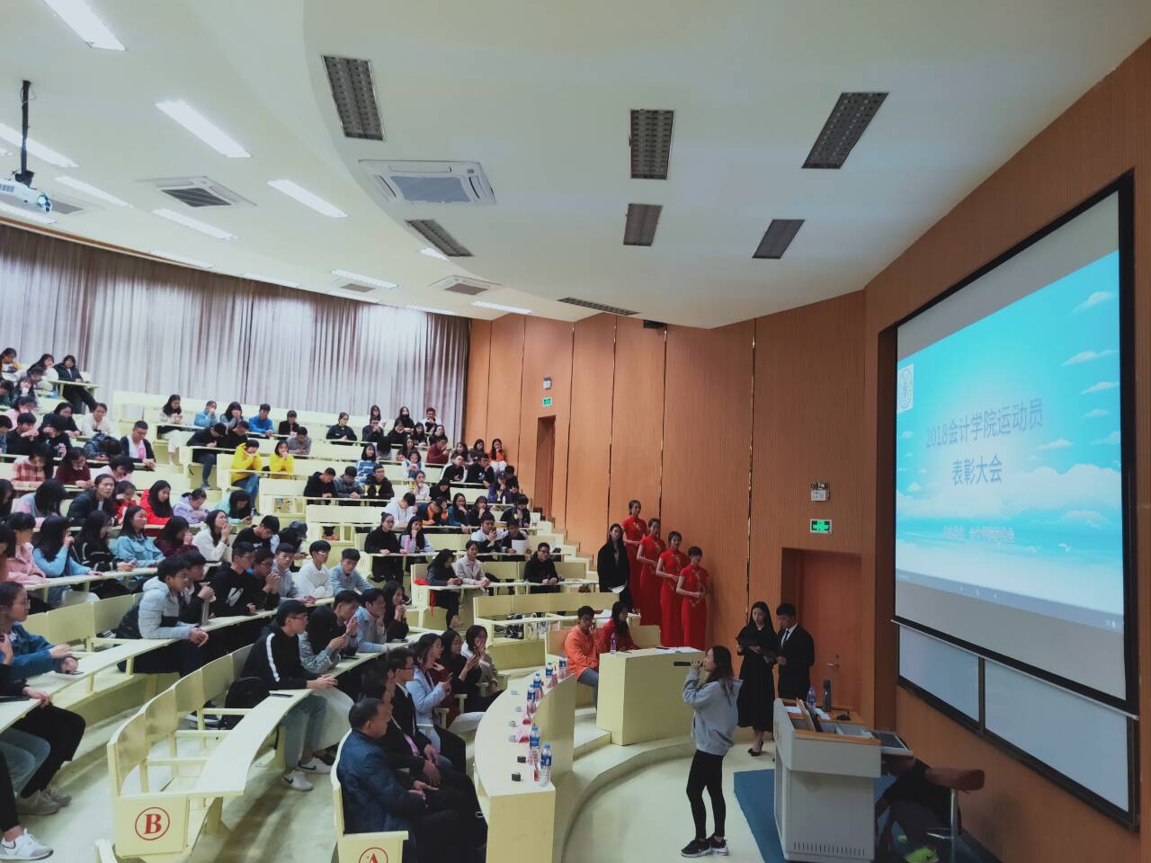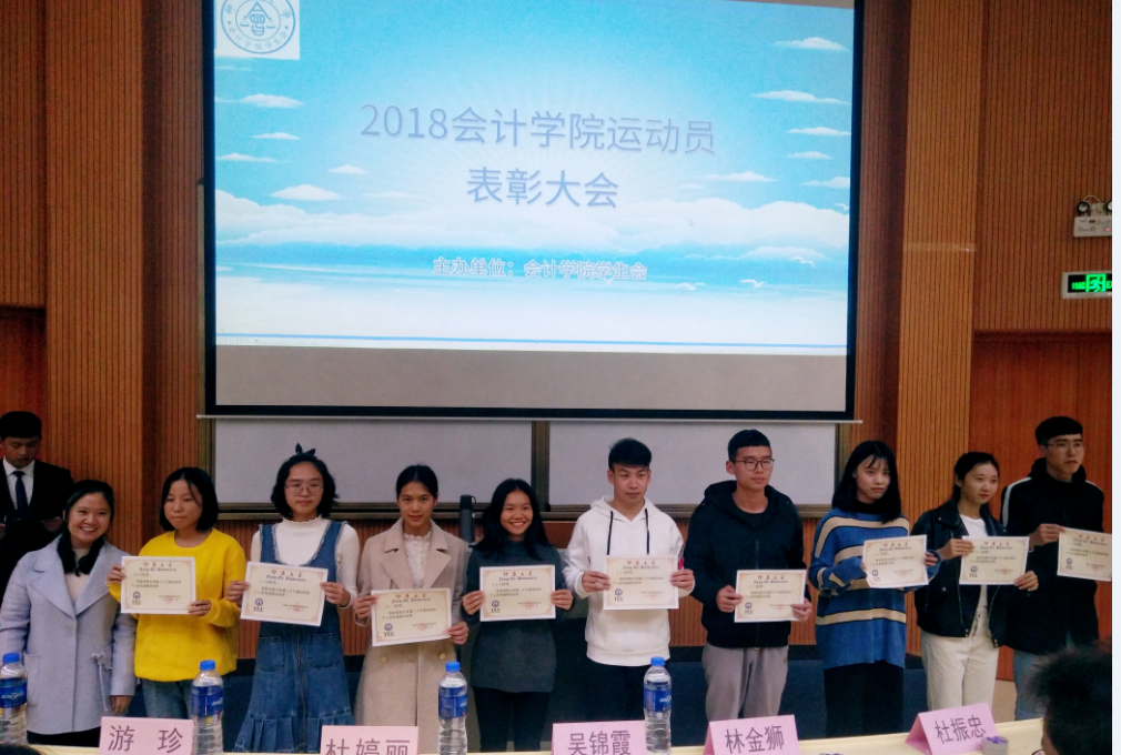 12月10日晚,今年会jinnian官网学生会在第一教学区和昌楼致知讲堂开展第二十七届运动员表彰大会。大会主要对优秀运动员及优秀后勤人员进行表彰。今年会jinnian官网党总支副书记吴锦霞、团委书记杜婷丽、党总支组织委员林金狮、18级班主任和来自永安村的三位嘉宾以及今年会jinnian官网18级全体学生出席本次大会。