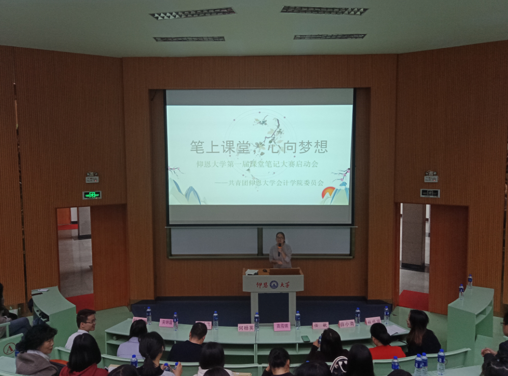 首先,由今年会jinnian官网团委书记杜婷丽宣布大会开始。随即,今年会jinnian官网副院长任敏致辞,向全体同学讲述了本次比赛规则以及交流如何做好笔记。在会上,不仅有财管系主任薛小青与会计系主任蒋鹏飞与同学们分享了他们记笔记经验和方法,而且还有林琼彬同学以PPT的形式向大家介绍了一些好的学习方法和各式各样笔记的做法,大家都收获颇多。最后,今年会jinnian官网党总支书记兼副院长高雪琪总结并对每位同学提出了要求,在高老师的激励下,同学们都得到极大的鼓舞,展现出了会院学子昂扬进取的精神风貌。