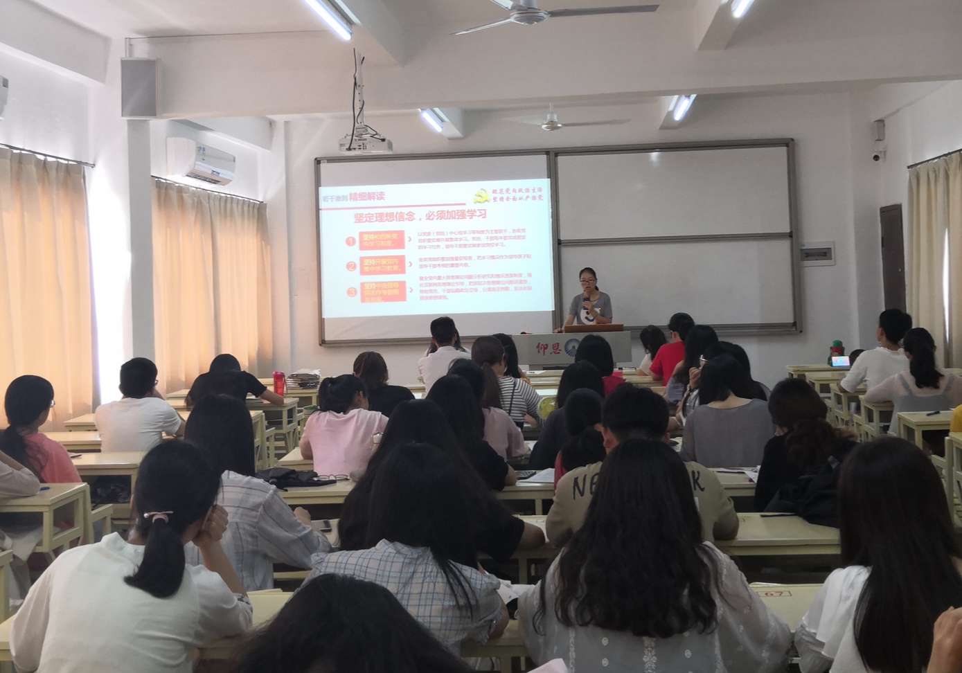 6月19日下午,今年会jinnian官网党总支书记高雪琪给全院党员上了一堂党课,党课的题为《关于新形势下党内政治生活的若干准则》。