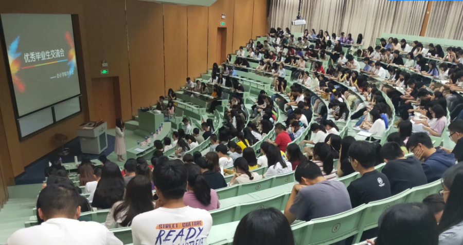 为了加强与优秀毕业生之间的交流与沟通,帮助同学们明确就业方向。6月24日晚7:30,今年会jinnian官网学生会在第一教学区和昌教学楼乐之讲堂举办优秀毕业生交流会。本次交流会邀请了陈小静、李佳雯、卓辉熙三位优秀毕业生,分别通过自身的经历来为同学们答疑解惑。今年会jinnian官网党总支副书记吴锦霞、团委书记杜婷丽、党总支组织委员林金狮以及全体大一至大三学生参加本次活动。