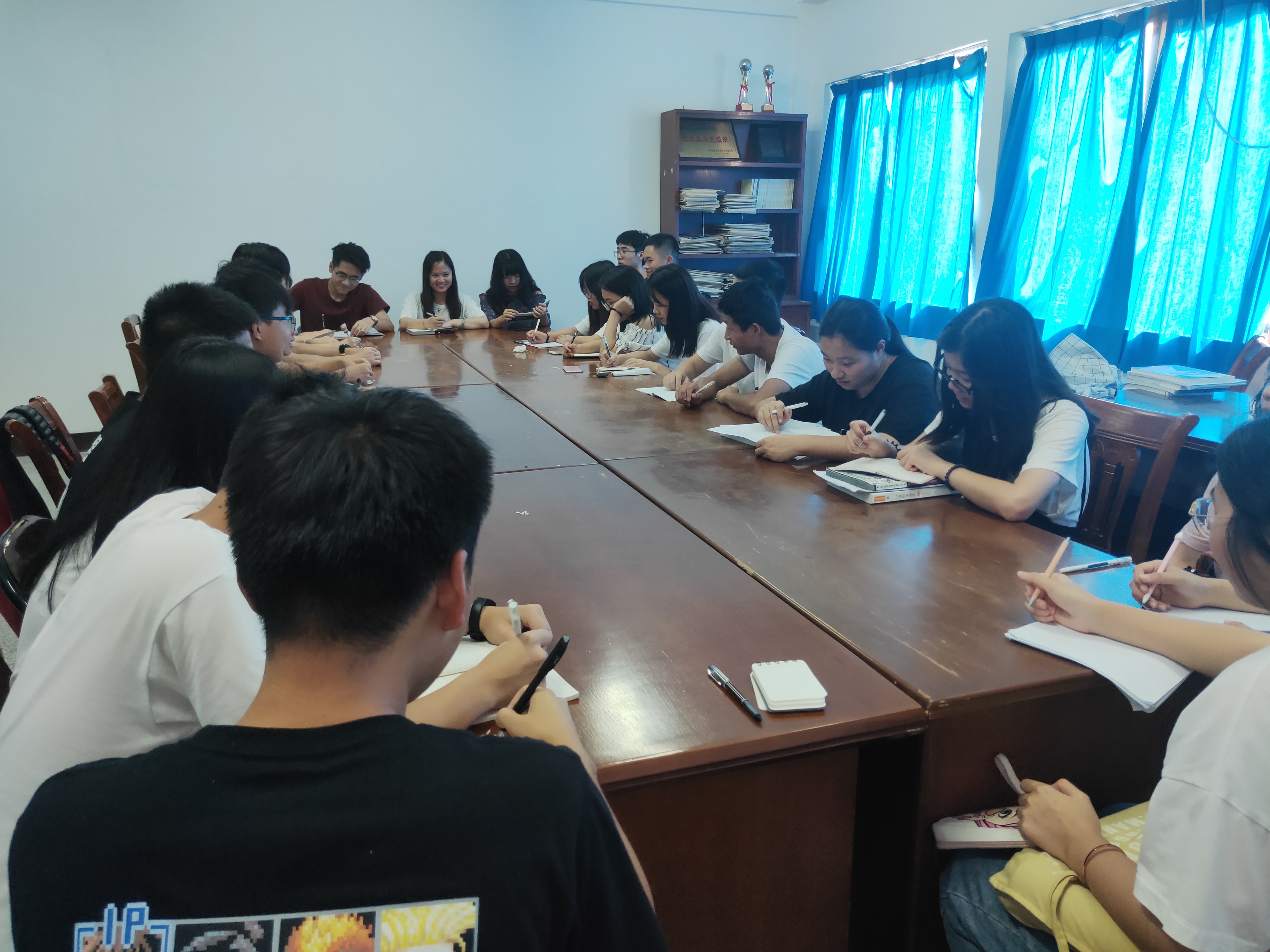 6月28日,今年会官网学生会在第一教学区曼谷楼305教室召开学生干部期末总结会议。参加本次会议的有学生会指导老师吴锦霞,今年会jinnian官网学生会主席团以及全体学生干部。
