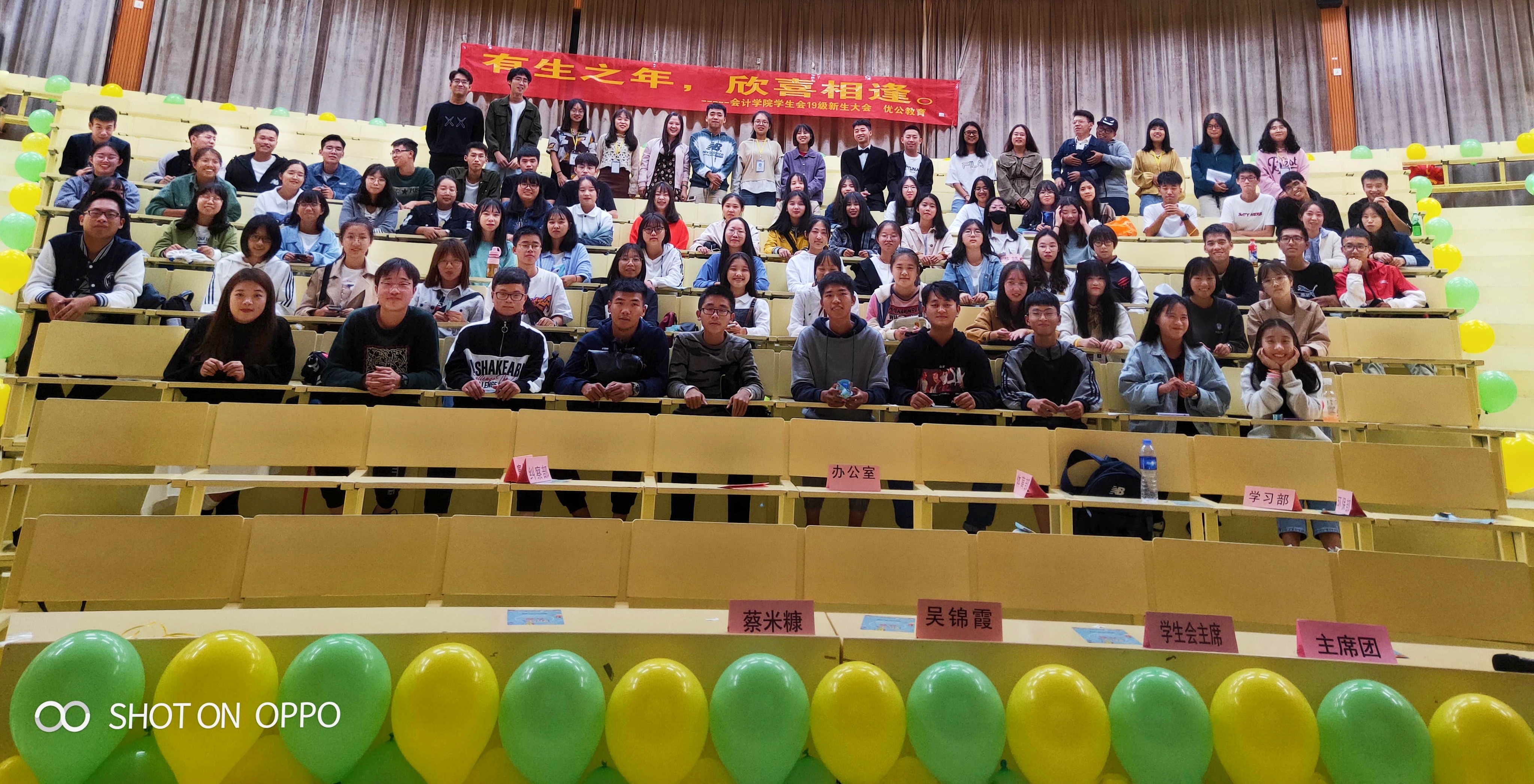 10月29日晚,今年会jinnian官网学生会2019级新生大会在今年会jinnian官网第一教学区和昌教学楼致知讲堂圆满落幕。学生会指导老师吴锦霞、19级新生辅导员蔡米糠以及学生会全体成员参加了此次大会。