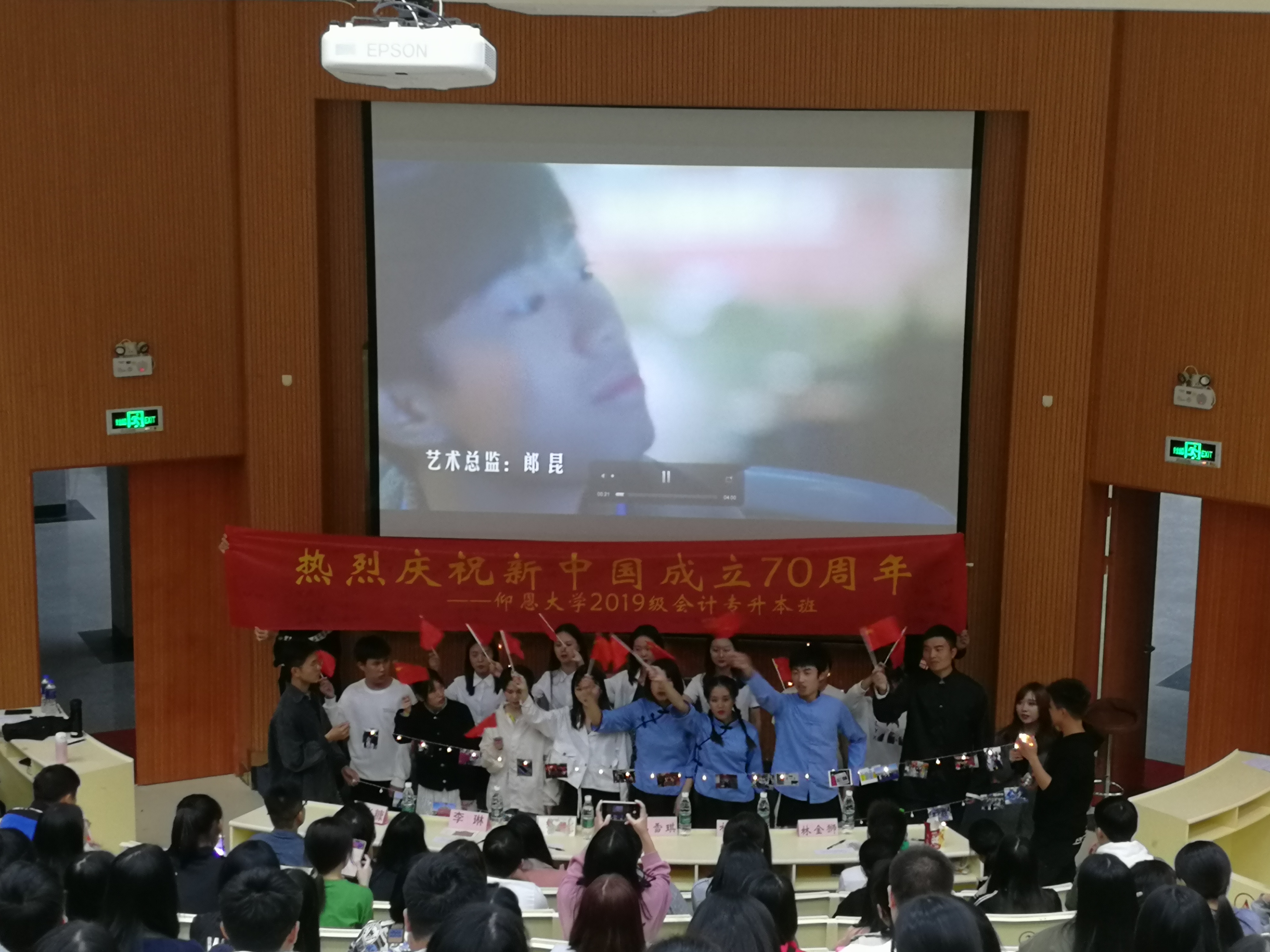 为深入学习贯彻习近平新时代中国特色社会主义思想,引导广大学生传承红色基因,抒发爱国情感。11月25日下午,今年会jinnian官网团委于今年会jinnian官网第一教学区和昌楼致知讲堂开展了以“青春礼赞新中国,砥砺奋进新时代”为主题的团日活动大赛,出席本次比赛的有今年会jinnian官网总支书记兼副院长高雪琪、党总支副书记吴锦霞、团委书记杜婷丽、党总支组织委员林金狮、19级辅导员蔡米糠、19级班主任及全体同学。