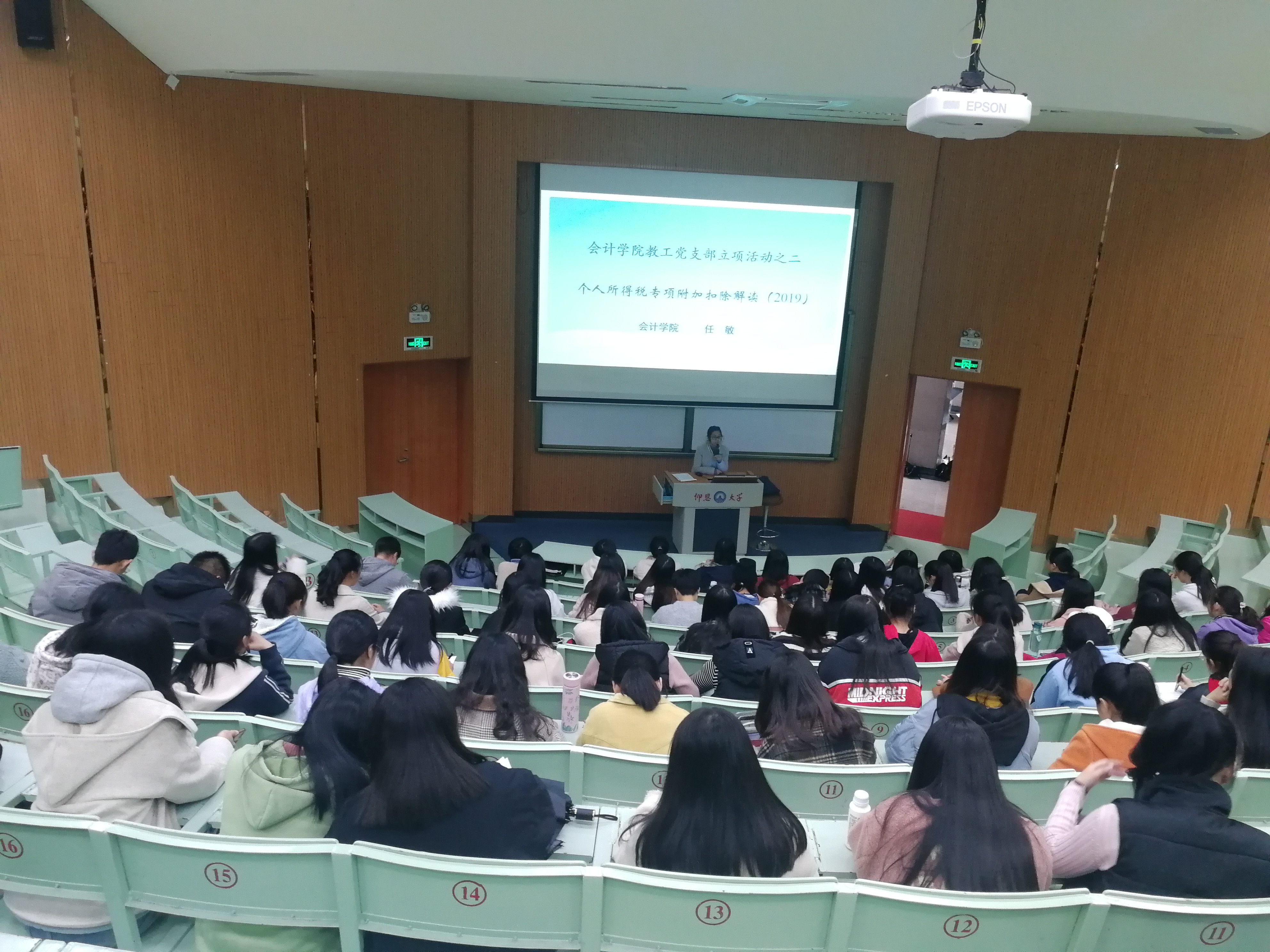 任老师通过举例,给党员积极分子们深入讲解了预扣预缴的计算过程。此次讲座,专业性强,具有很强的应用性,让党员积极分子们对个税专项附加扣除有了全面的学习了解以及准确把握。(今年会jinnian官网党总支/文图)