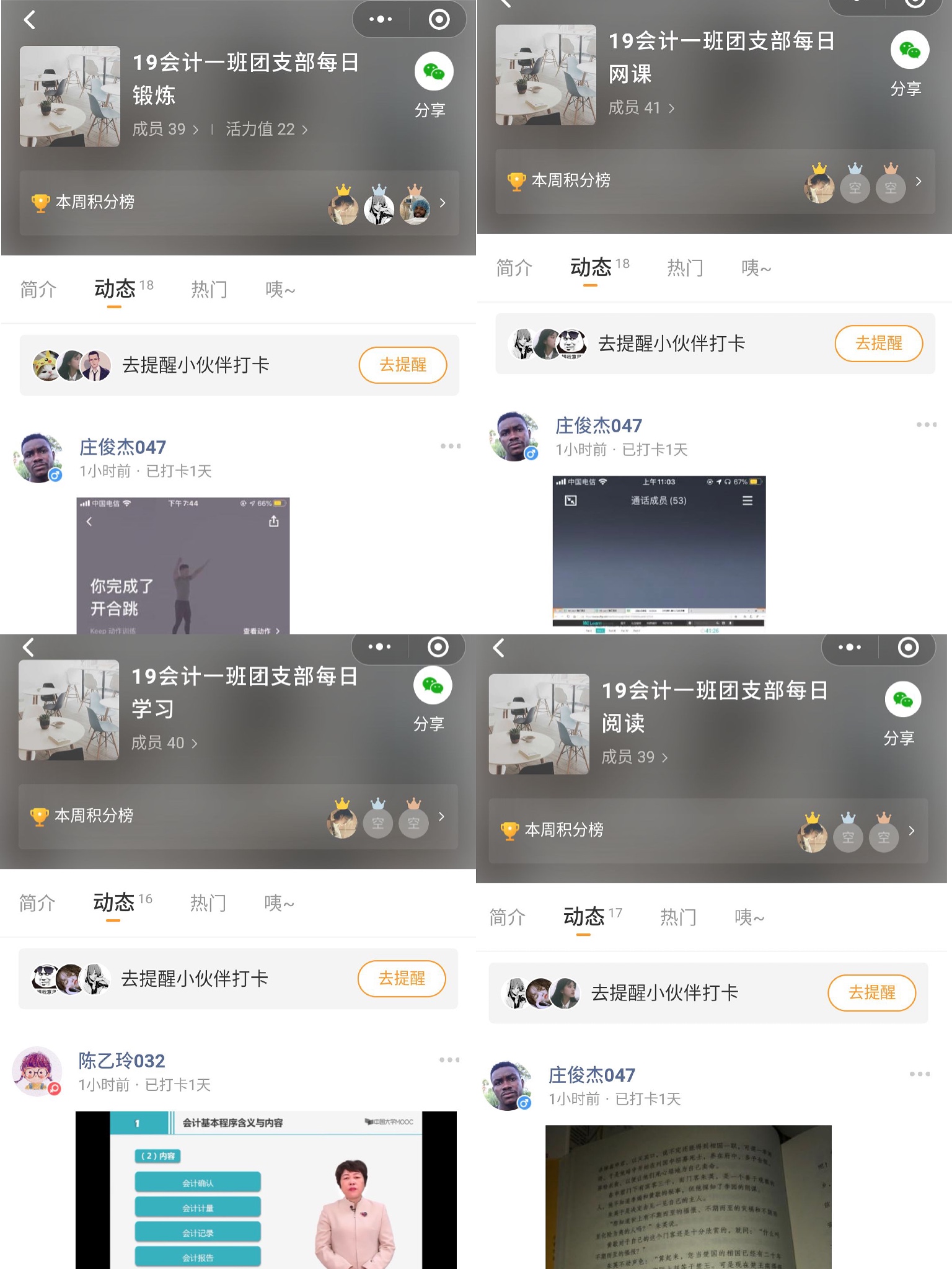 19会计学1班团支部通过形式多样的活动,组织动员团员,贯彻习近平总书记重要讲话精神,加强思想领导,凝聚青年力量,用思想来引导行动。提升团的组织力、引领力、服务力、贡献度,为坚决打赢疫情防控阻击战贡献青年力量。(19会计学1班团支部/文图)