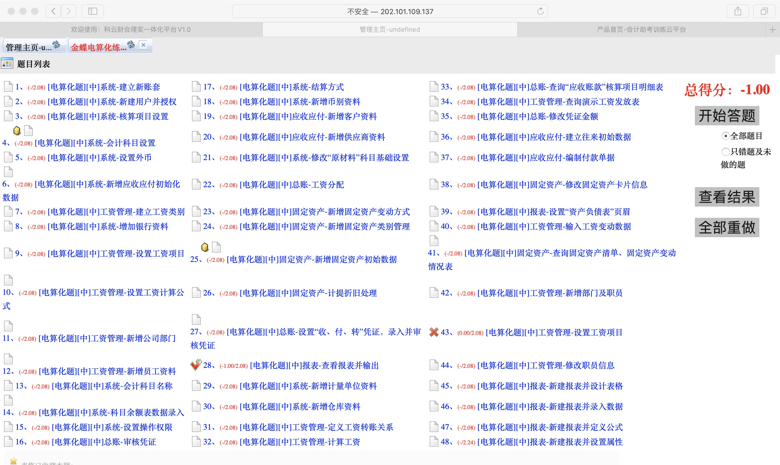 在实操性体验上,为实现学生在家也能进行实操实验课程,同时也解决学生没有带电脑回家无法进行操作的问题。通过让学生下载名为金蝶KIS云的系统,这个系统安装简单,而且学生可以在电脑、手机和平板上进行操作学习,实现“云操作”。但是,学生通过该操作平台,有些数据已经提前设置完成,无法完全按照在校实验室一样操作。为了让学生更有实感,利用学校的科云财会理实一体化平台,学生可以在该平台上进行操作,并对学生的操作结果打分,更好地监督和检验学生的学习成果。