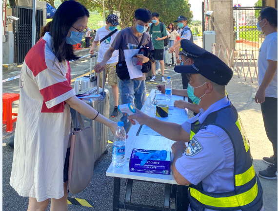 在今年会jinnian官网第一教学区学生报到处,保卫处工作人员逐一核验学生身份证、学生证、健康码,测量体温正常后方可入校。学院领导与返校毕业生亲切交流,关心了解他们的健康情况及就业情况,叮嘱他们返校后要严格遵守学校疫情防控的要求,在做好自身防护的前提下,有序办理毕业生离校手续,并祝愿大家前程似锦。