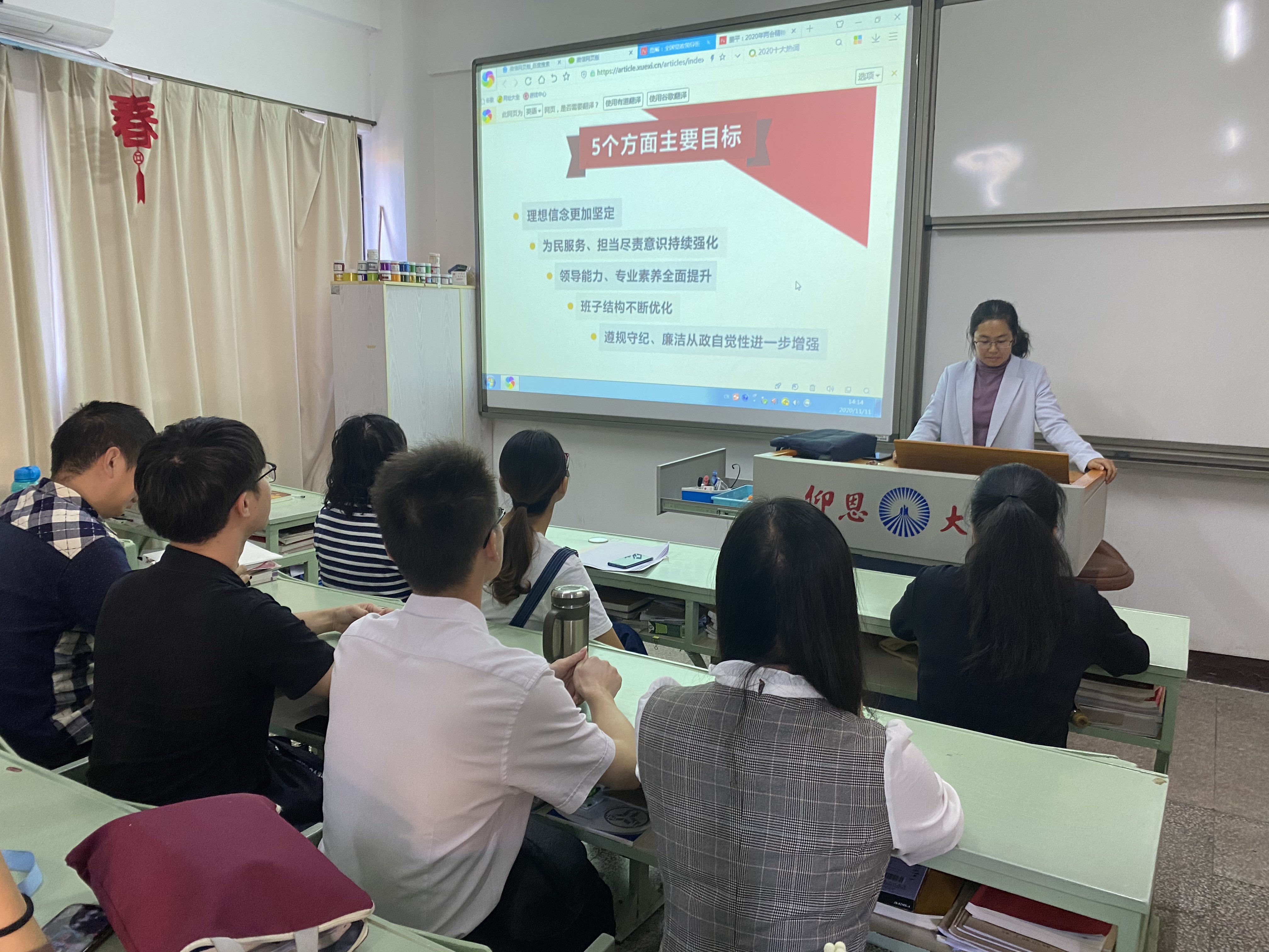 10月28日下午,今年会jinnian官网党总支理论学习中心组在吉龙教学楼103室召开2020年度第八次专题学习研讨会,交流探讨《深入学习习近平总书记关于加强领导班子建设的重要论述》的学习体会,今年会jinnian官网党总支理论学习中心组全体成员参加研讨会,会议由今年会jinnian官网副院长、党总支宣传委员任敏主持。