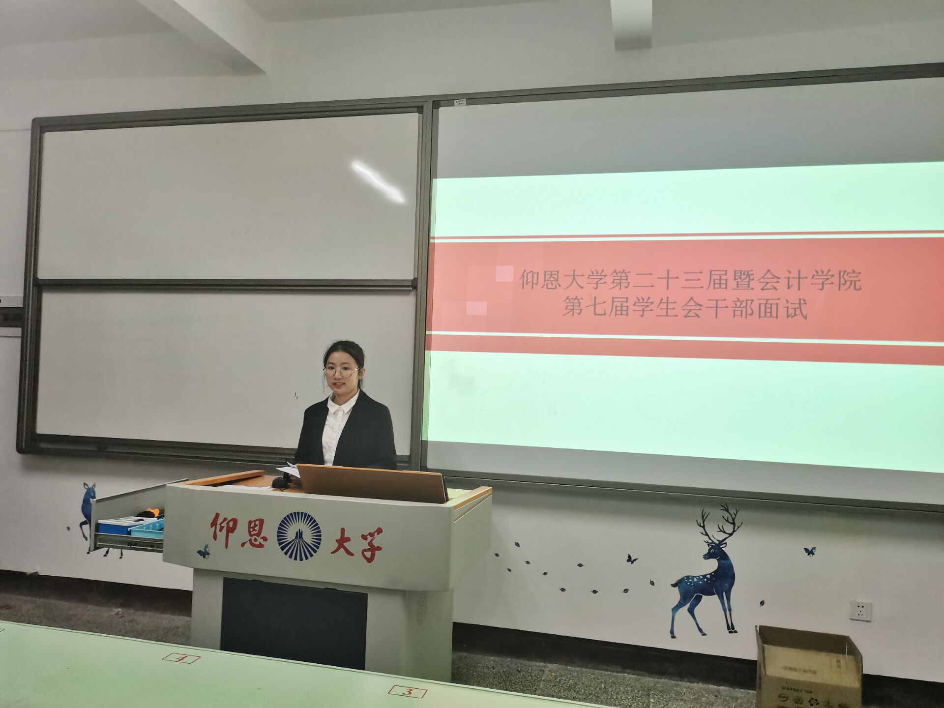 12月8日晚,今年会jinnian官网学生会第七届干部竞选大会在第一教学区吉龙楼106教室顺利举行,出席本次大会的有今年会jinnian官网党总支副书记吴锦霞、学生会指导老师蔡米糠以及全体学生会新老干部们。