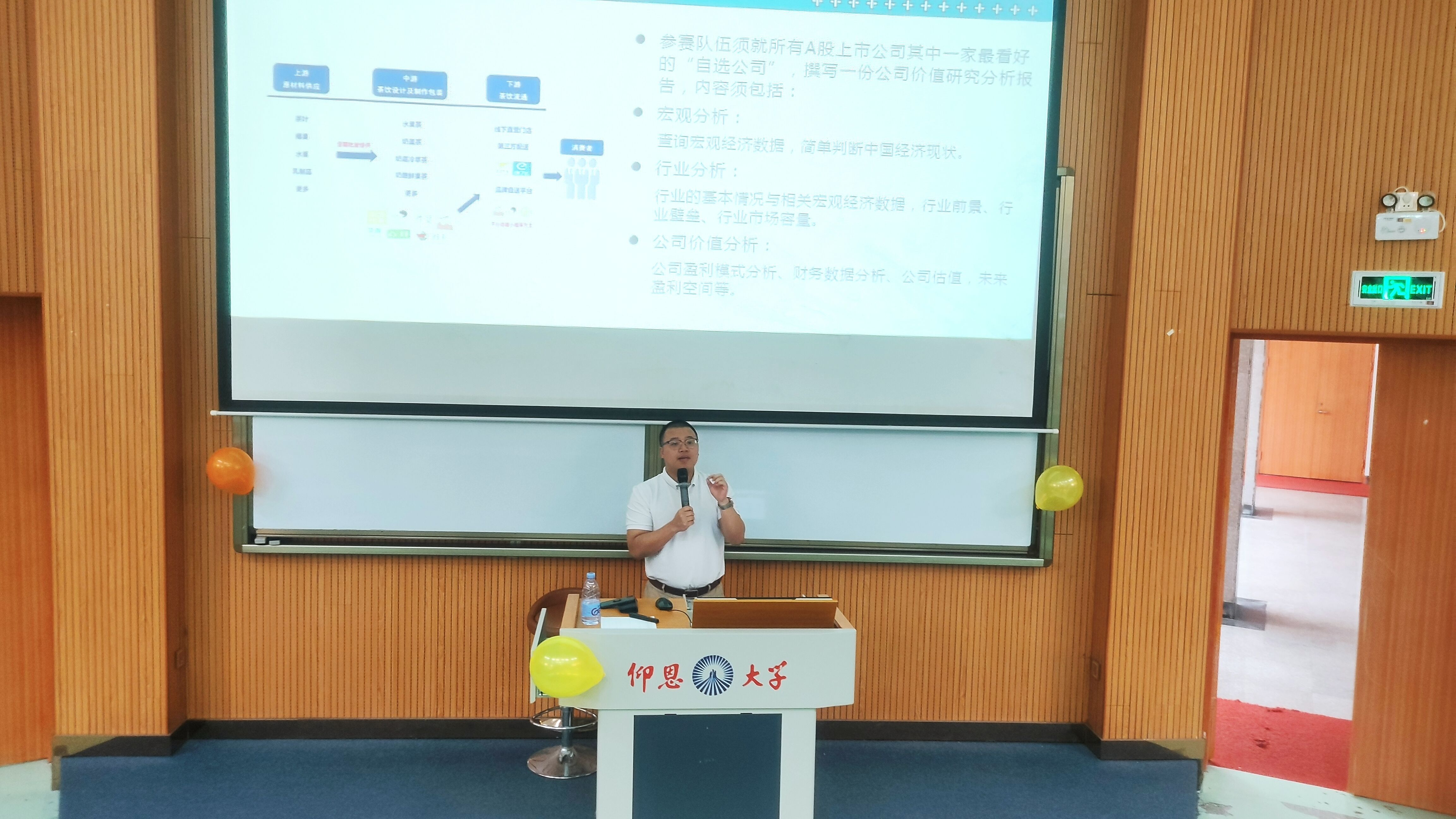 4月14日下午3:50,今年会jinnian官网在第一教学区和昌教学楼乐之讲堂召开了“中创财经杯” CFA特许金融分析师公司价值研究分析比赛赛前辅导暨职业生涯规划讲座,讲座在聚英教育集团讲师潘曦和今年会jinnian官网19级、20级全体同学的共同参与下圆满结束。