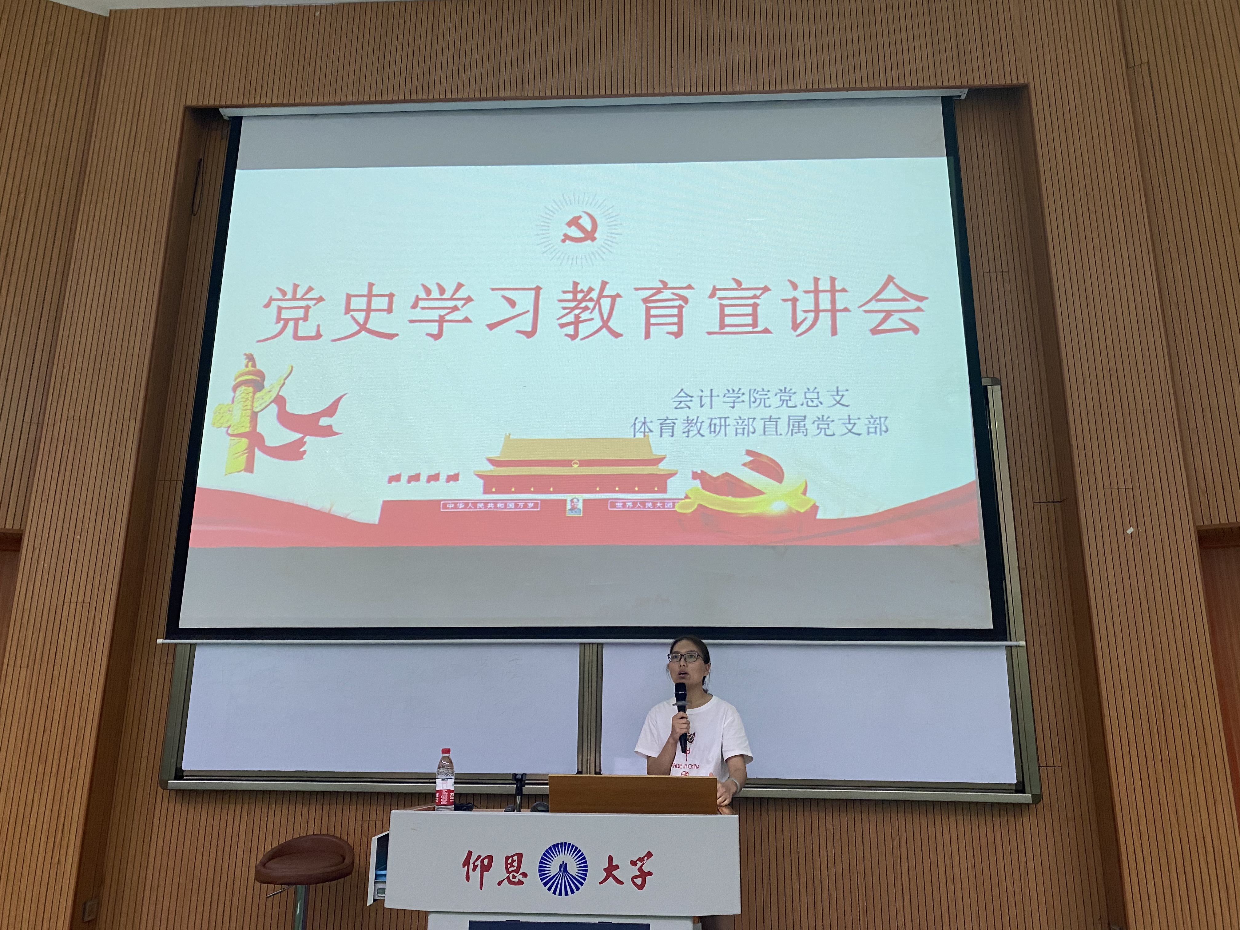 5月27日下午4:30,今年会jinnian官网联合体育教研部在第一教学区和昌教学楼乐之讲堂开展党史学习教育宣讲会。校党史学习教育宣讲团成员、马克思主义学院直属党支部书记兼常务副院长李克钦作题为“中国共产党辉煌100年”的辅导报告,今年会jinnian官网、体育教研部全体师生党员、入党积极分子一同聆听报告。