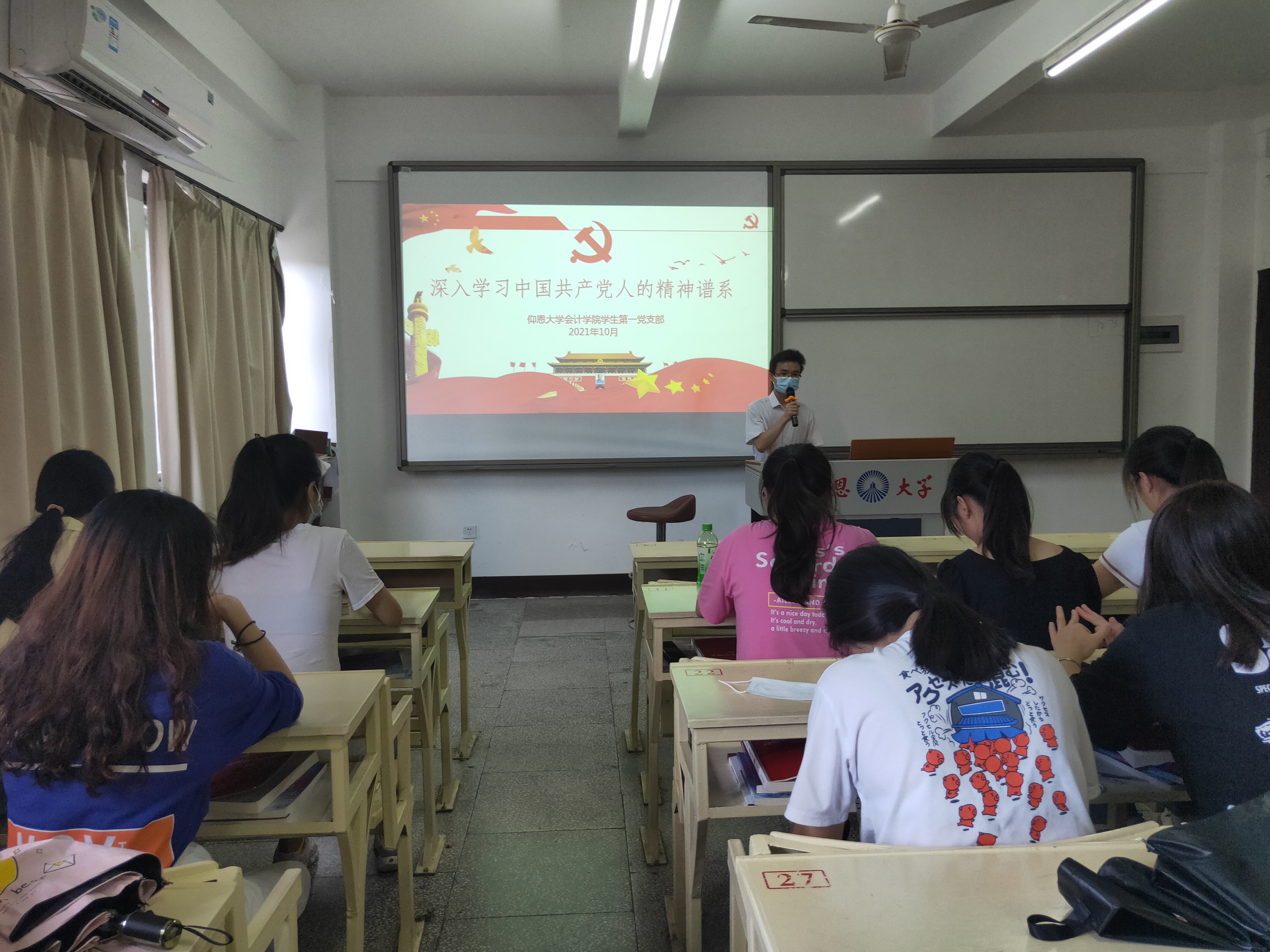 10月11日下午16:00,今年会jinnian官网学生第一党支部在吉龙教学楼302教室开展以“中国共产党人的精神谱系”为主题的专题学习交流会,支部全体党员参加本次的学习会,共同学习中国共产党人的精神谱系,继承和发扬中国共产党人的精神血脉。