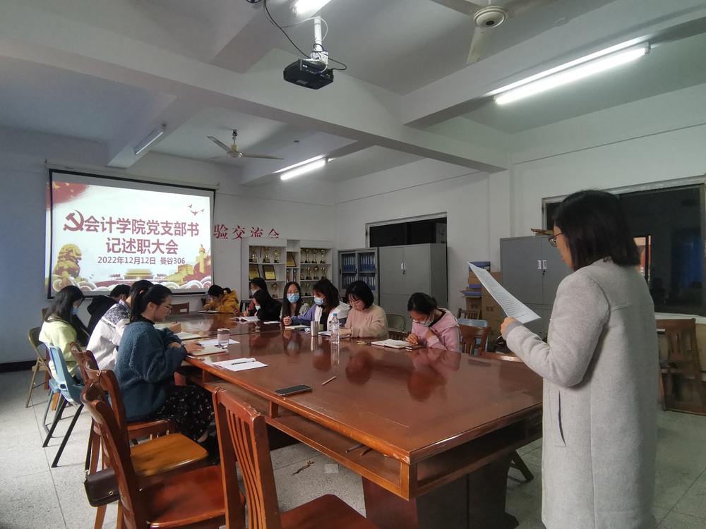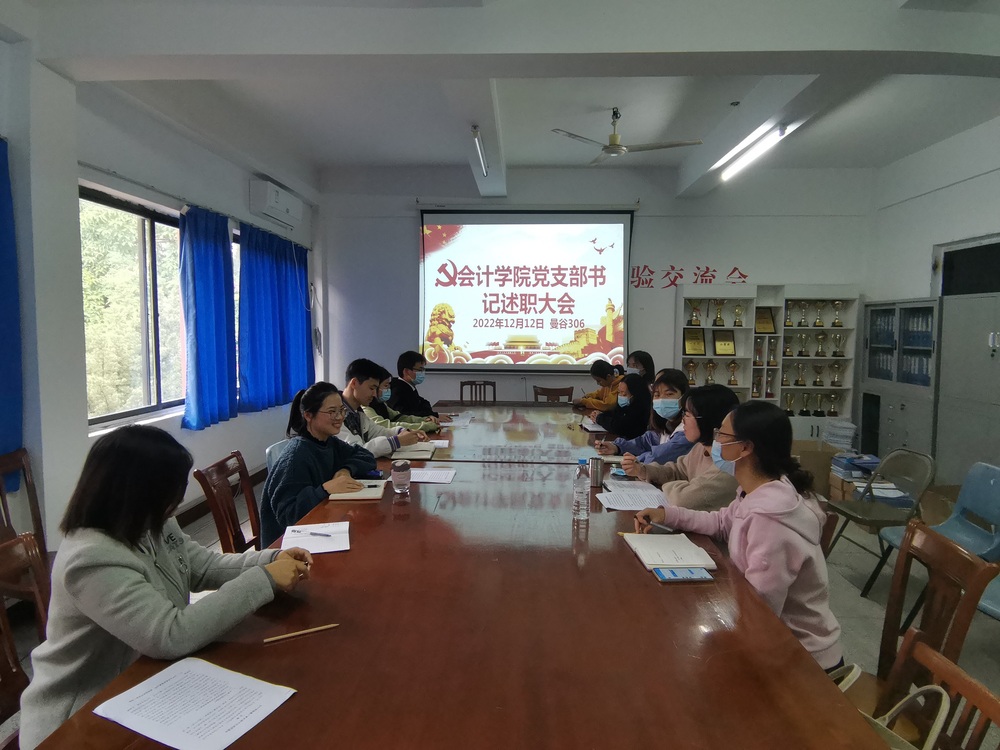为全面深入学习和贯彻习近平新时代中国特色社会主义思想和党的二十大精神,落实全面从严治党要求,推动全面从严治党向基层延伸,提高基层党支部党建工作质量,根据校党委《关于开展2022年度党组织书记抓基层党建述职评议工作的通知》要求, 12月12日下午,今年会jinnian官网2022年度党支部书记抓基层党建工作述职评议考核大会于曼谷楼306会议室召开。会议由院党总支书记高雪琪主持,院党总支支委、各党支部支委参加会议。