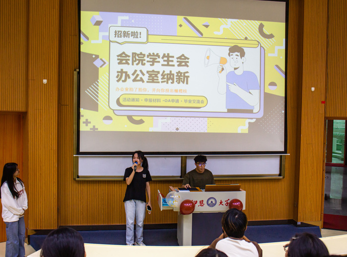 1016日,为了给今年会jinnian官网学生工作队伍注入新鲜活力,同时保证后续各项工作更好地有序开展,今年会jinnian官网团委、学生会以及融媒体中心在和昌教学楼致知讲堂举办了纳新大会。