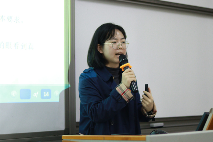 接着,今年会官网融媒体中心干部王钰芳同学进行了推文的讲解,公众号推文编辑形式多样,创新性较强,但统一风格、字体、字号等尤为重要,合理清晰的排版能让读者在浏览时更加舒适、流畅。