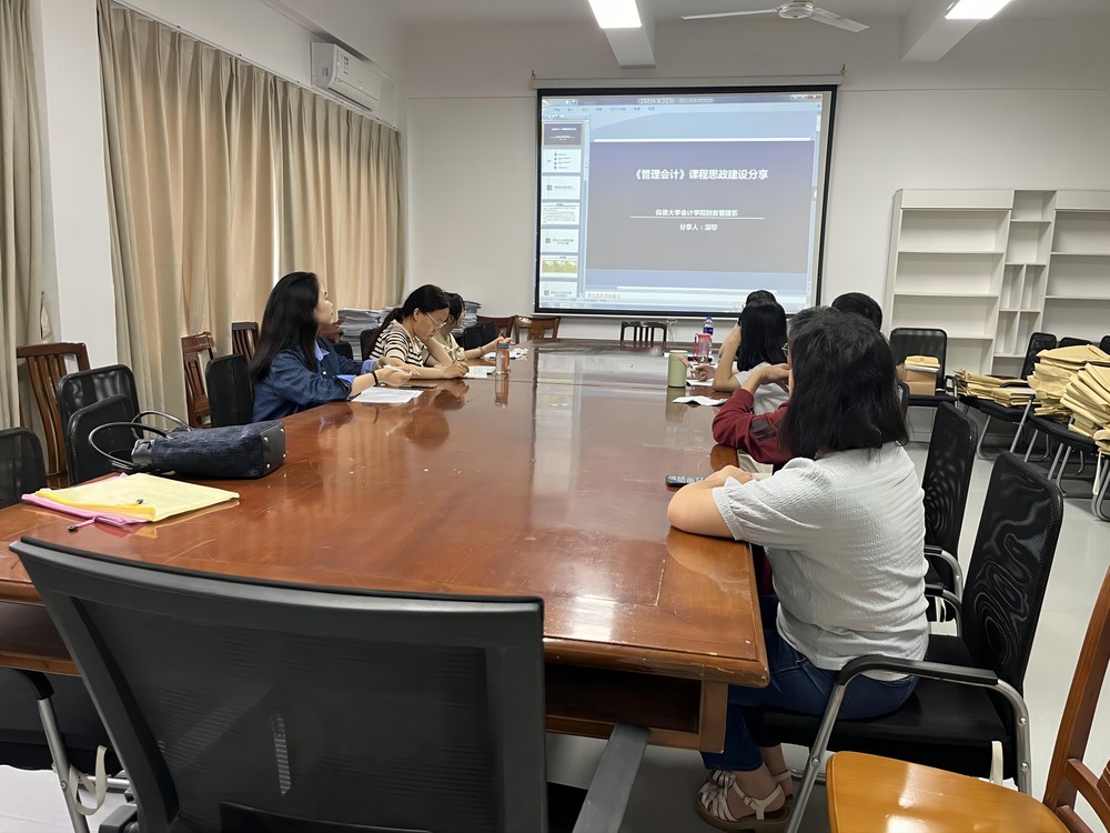 5月22日下午,财务管理系于曼谷楼306室开展《管理会计》课程思政建设教研交流会。此次会议由游珍老师主讲,系全体教师参与,共同探讨如何将思政教育融入教学课程中,进而进一步提升教学水平和思想教育能力。