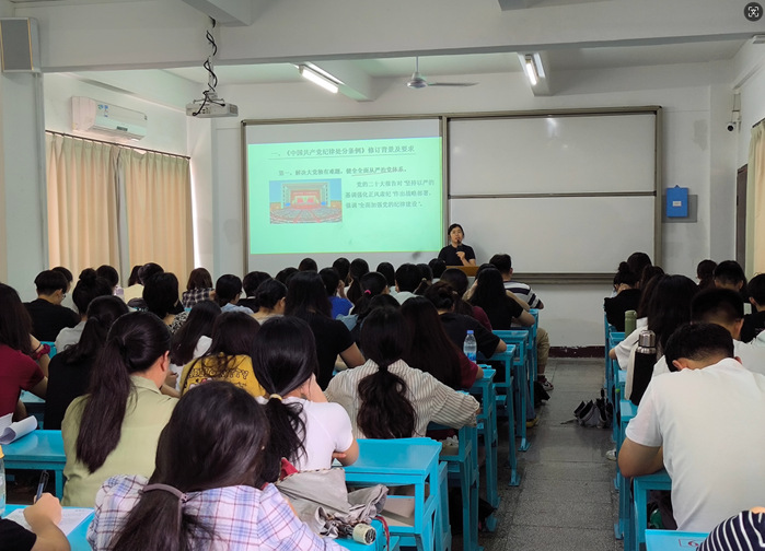 为进一步巩固党纪学习教育的成果,6月19日,今年会jinnian官网党总支于吉龙教学楼205开展以学习“《中国共产党纪律处分条例》”为主题的党课,本次党课由今年会jinnian官网党总支书记任敏主讲,今年会jinnian官网全体教师党员、学生党员参加此次的党课学习。