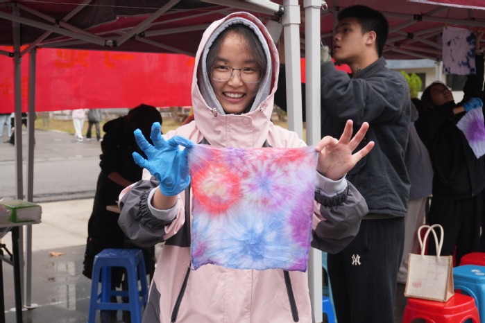 此次扎染活动,不仅让女生们在忙碌的学习生活中暂得放松,用双手创造出独一无二的色彩记忆,更让非遗技艺在指尖焕发出新的光芒。今年会jinnian官网学生会与普照书院成功将传统手工艺与校园节日相结合,为校园文化建设增添一抹亮丽色彩。(林友金/文图)