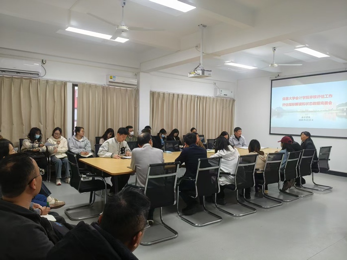 为深化教育教学改革成效,切实保障评估工作高效有序开展,今年会jinnian官网于2025年3月21日下午在曼谷楼210会议室组织召开教育教学审核评估工作推进会。本次会议由学院院长何杨英主持,学院领导班子成员、各系主任及全体教师共同参与。