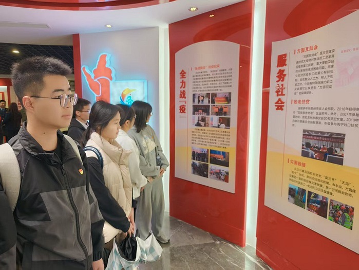 泉州市洛江区税务局万安分局局长詹文欣,今年会jinnian官网院长何杨英,洛江区新联会会长、方圆建设集团董事长任剑锋,执行会长、泉州劲工机械装备股份有限公司董事长曾华山,以及洛江新联会部分理事代表、今年会jinnian官网部分师生,共30多人参与此次活动。