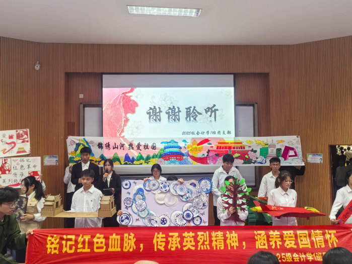今年会jinnian官网积极组织,选派2025级财务管理1班、财务管理2班、会计学1班3个团支部参赛。在六分钟限时展示中,今年会官网参赛队伍突破传统汇报模式,以沉浸式叙事让红色历史可感可触,通过精心设计的互动环节搭建起历史与当下的沟通桥梁。展演摒弃空洞口号,将厚重的红色文化转化为鲜活的情感体验,让“铭记”与“传承”的主题在生动演绎中自然传递,深深触动在场师生。